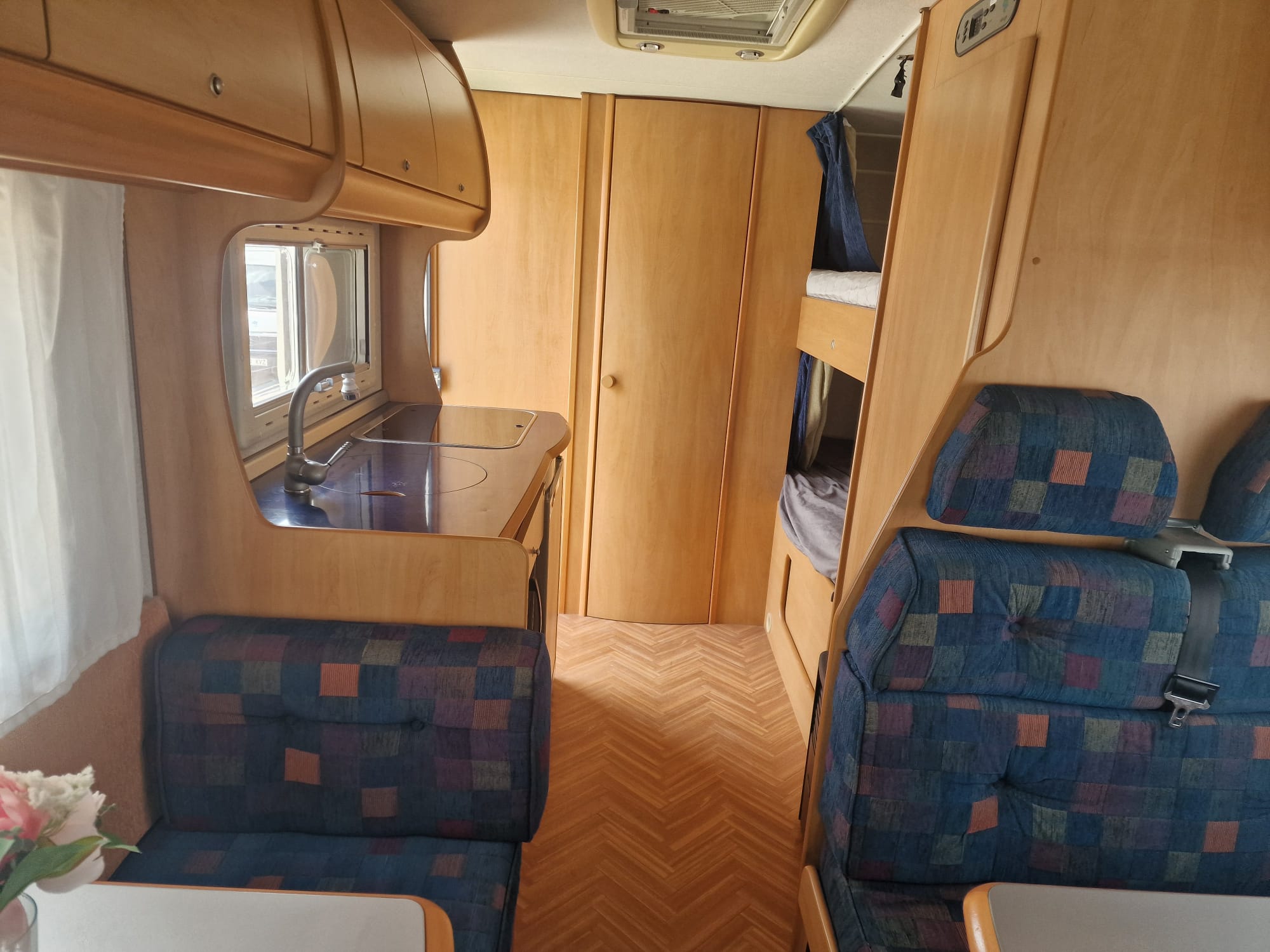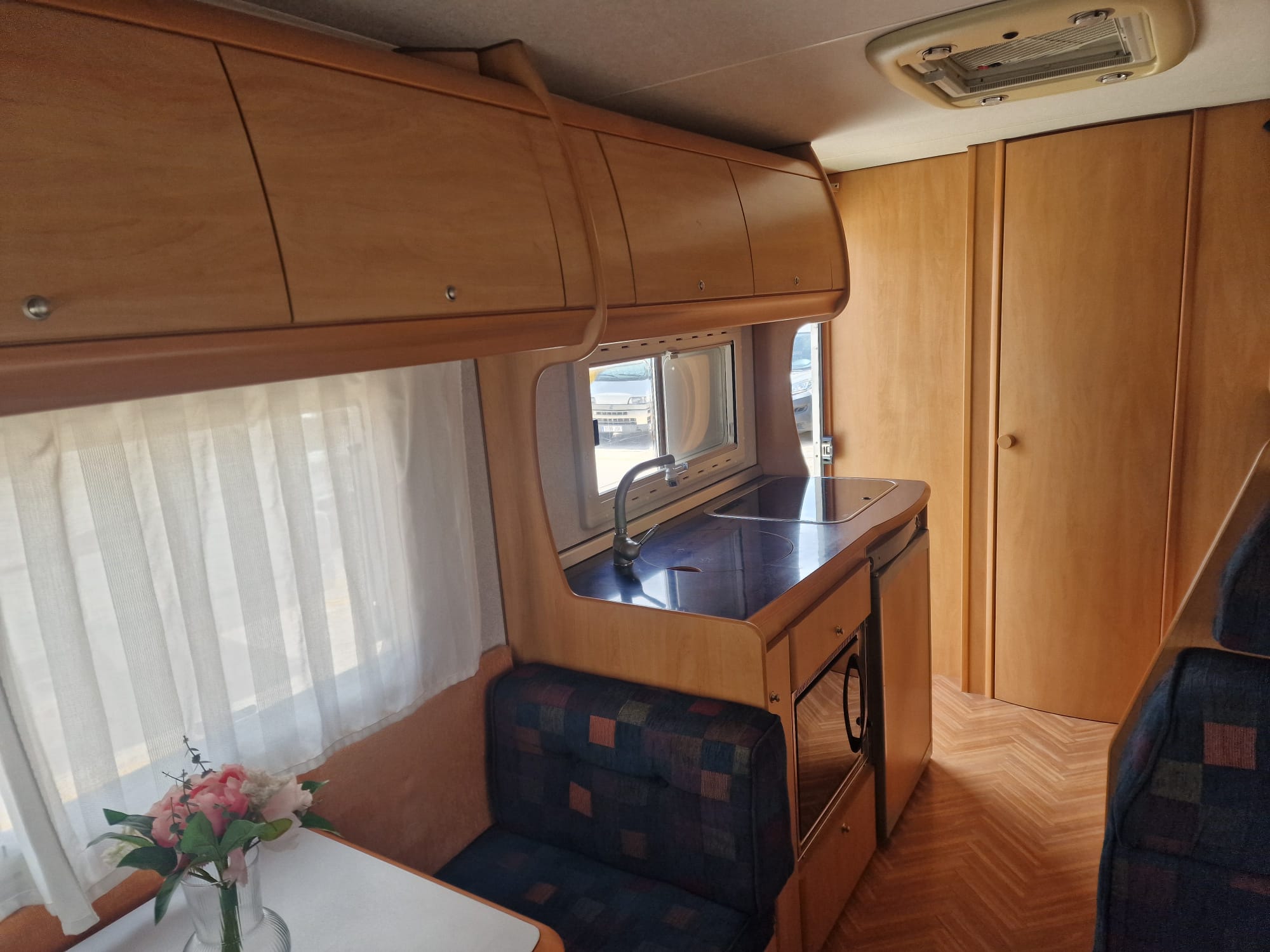 Autocaravanas Luxury!!!!! Pone a la venta esta fantástica autocaravana y robusta , capuchina modelo elnagh joxy del año 2003, con un motor IVECO muy duradero 2.8 de 145 cv. Con tan solo 77015 km. Entre las comodidades cuenta con doble salón muy espacioso, cama capuchina de 1.40 x 2,05, también con camas literas de 0.80 x 2.00, cuenta con agua caliente, calefacción, aire acondicionado en habitaculo que funciona tanto con la autocaravana parada como viajando. Tiene una cocina completa y horno.tiene un garaje de gran capacidad ya que la literas de abajo se levanta y proporciona un gran espacio. Tiene portabicis, chasis alko. Es para viajar 4 personas homologadas. Tiene escalon eléctrico. Toldo exterior. Todas las ventanas tienen mosquiteras y oscurecedores. Disponemos de entrega a domicilio. Se entrega con revisión mecánica y de habitáculo y se da un año de garantía. Tenemos financiación. Atendemos wasap y tno todos los dias y festivos al 672.552.727 y al mail info@autocaravanasluxury.es