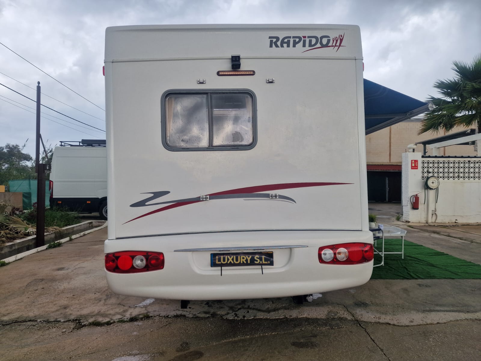 Autocaravanas Luxury!!!!!! Presenta esta autocaravana integral Rápido 942M, del año 2004 con un diseño interior que aporta mucho espacio y con acabados de mucha calidad, con motor mercedes 2.7 CDI de 155 cv, con caja de cambios automática. Con 124253 km, Cuenta con unas medidas de 6,10 m de largo, 2,78m de alto y 2,30m de ancho, se conduce con carnet B, de coche, con 4 plazas para viajar y 4 dormir gracias a sus 2 camas, una francesa en la parte trasera más una basculante sobre la cabina. Tiene escalon eléctrico, aire acondicionado en cabina, asientos delanteros giratorios, lo que permite un salón amplio, una cocina completa y nevera grande, el dormitorio se queda independiente gracias a su puerta corredera, cuenta con un baño muy espacioso con ducha separada con mampara, también cámara trasera, toldo exterior, mosquiteras y oscurecedores en todas las ventanas, disponemos de entrega a domicilio, atendemos wasap y tfno todos los dias y festivos al 672.552.727 o email info@autocaravanasluxury.es.